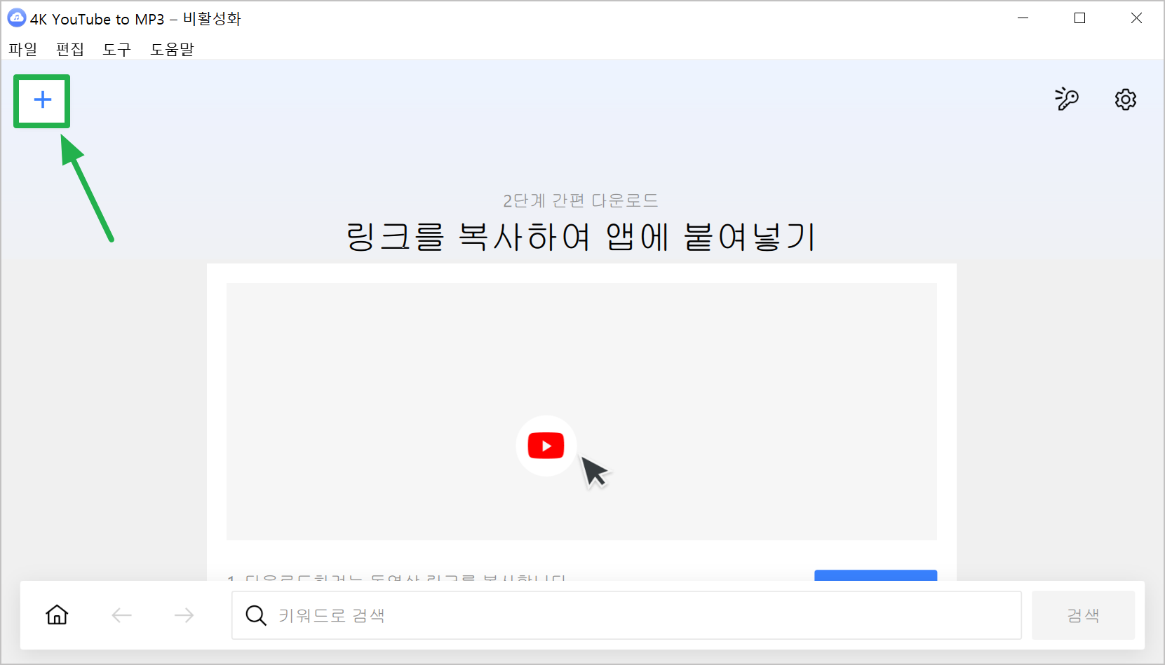 6. '4kyoutubetomp3'를 메인화면 좌측 상단에 있는 '+ 모양 아이콘'을 클릭합니다.