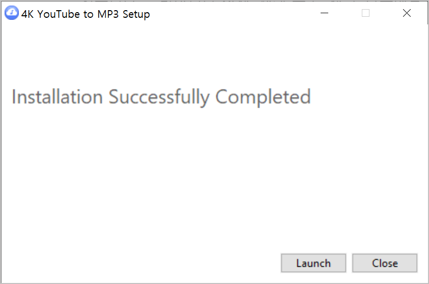 5. 'Installaio Successfully Completed'가 나오면 'Launch'를 클릭해 '4kyoutubetomp3'를 실행시킵니다.
