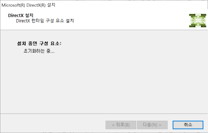 3. 잠시 후 디렉트 X 러너 타임 구성 요소 설치가 및 초기화 작업이 진행됩니다.
