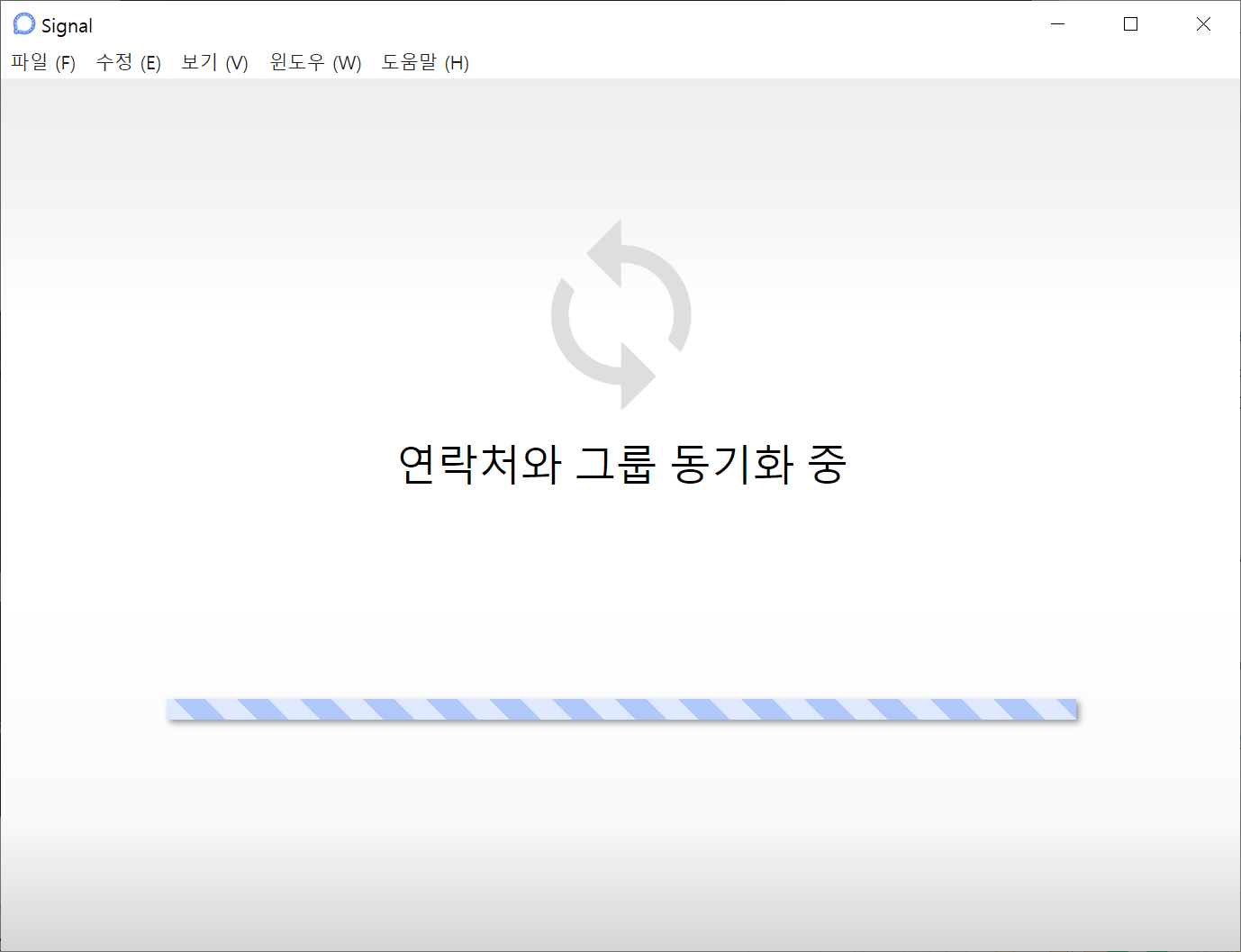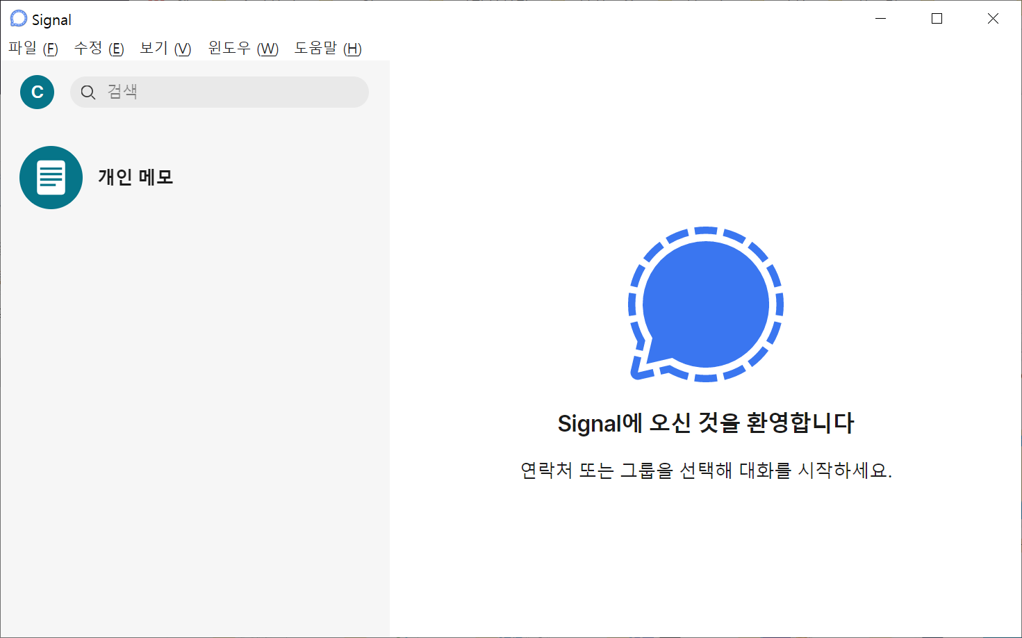 6. 잠시 후 모든 동기화가 완료되면 'Singnal에 오신 것을 환영합니다'라는 알림과 함께 프로그램이 정상적으로 실행됩니다.