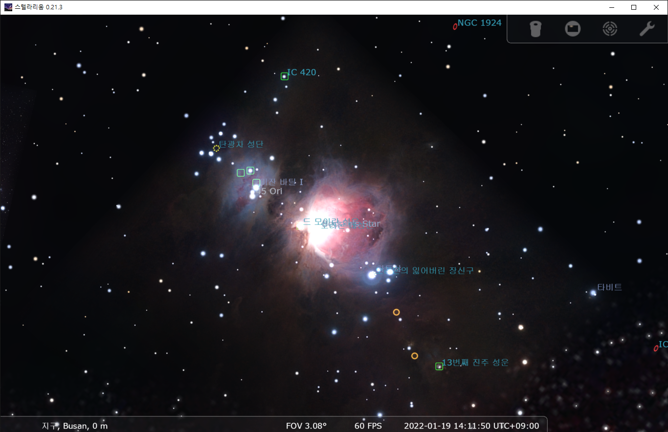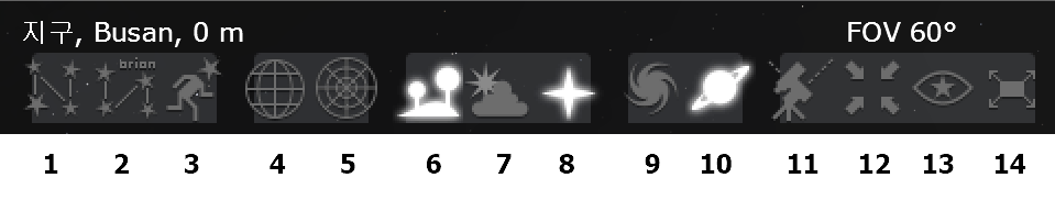 - 검색창(F3) : 원하는 천체를 검색해 찾을 수 있습니다.