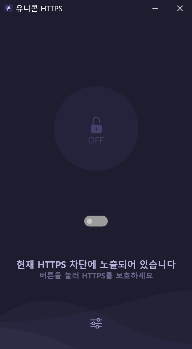잠시 후 잠긴 자물쇠 모양 아이콘이 열리며 'OFF'에서 'ON' 상태로 변경되며 HTTPS 우회 및 보호가 시작됩니다.