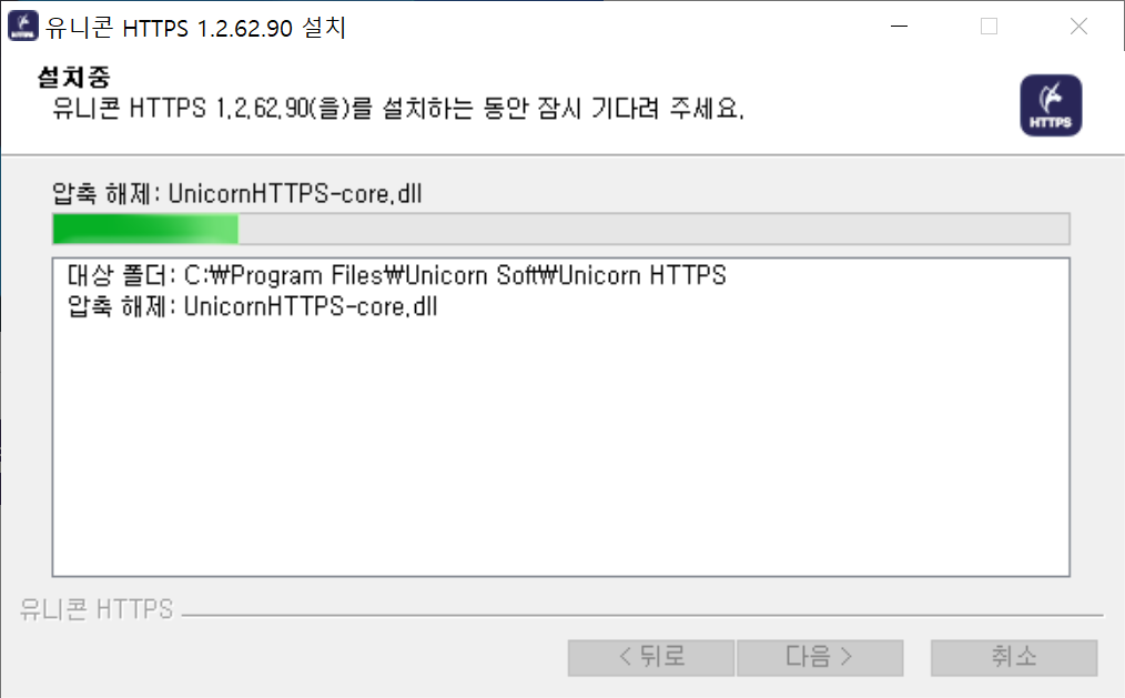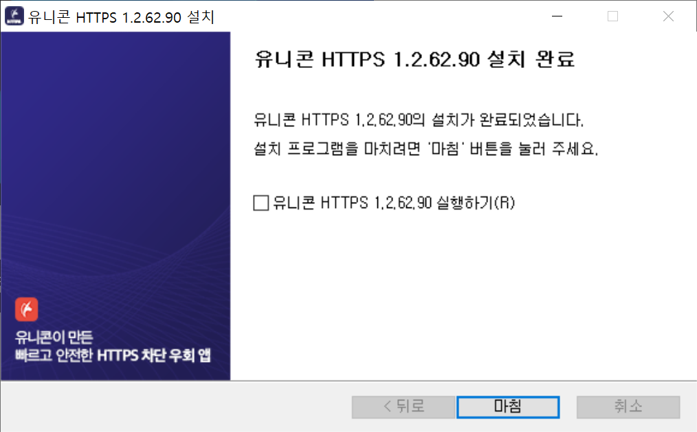 이제 다운로드한 유니콘앱 인스톨러 파일 'unicorn-https-setup.exe'를 더블 클릭해 실행시킵니다.