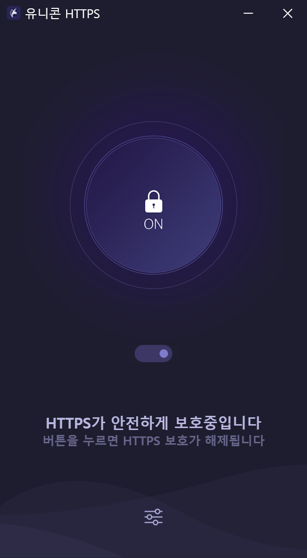 잠시 후 잠긴 자물쇠 모양 아이콘이 열리며 'OFF'에서 'ON' 상태로 변경되며 HTTPS 우회 및 보호가 시작됩니다.