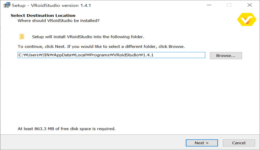 2. 다운로드한 설치 파일 VRoidStudio-버전명.exe 파일을 더블 클릭해 실행시킵니다.