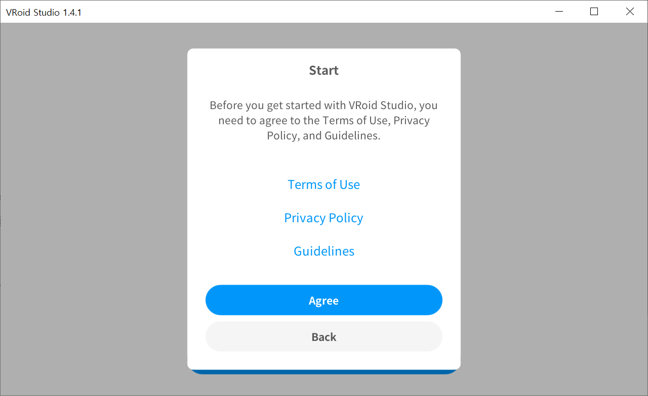7. 최신버전 VRoid Studio 실행되면 프로그램 사용을 위한 약관에 동의(Agree) 합니다.