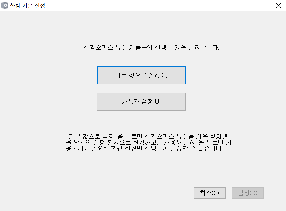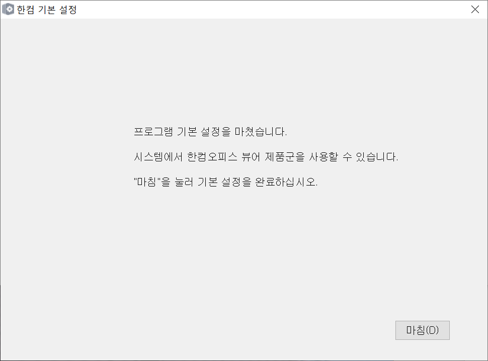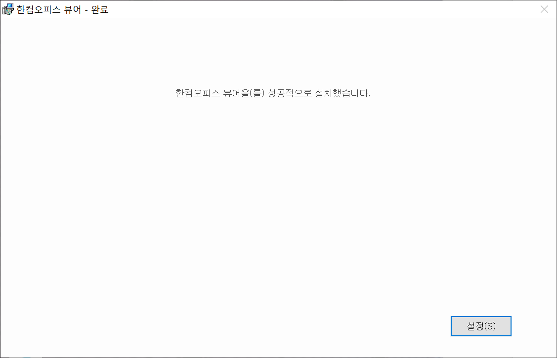 6. 한컴오피스 설치가 성공적을 완료됐다면 설정을 클릭합니다.