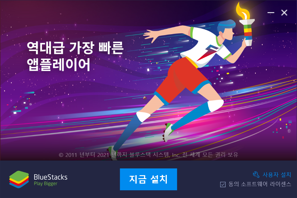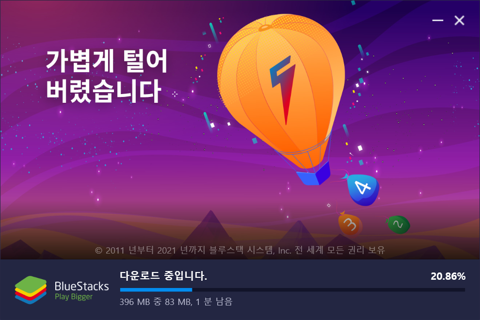 1. 먼저 다운로드한 셋업 파일 "BlueStacksInstaller"를 더블 클릭해 설치합니다.