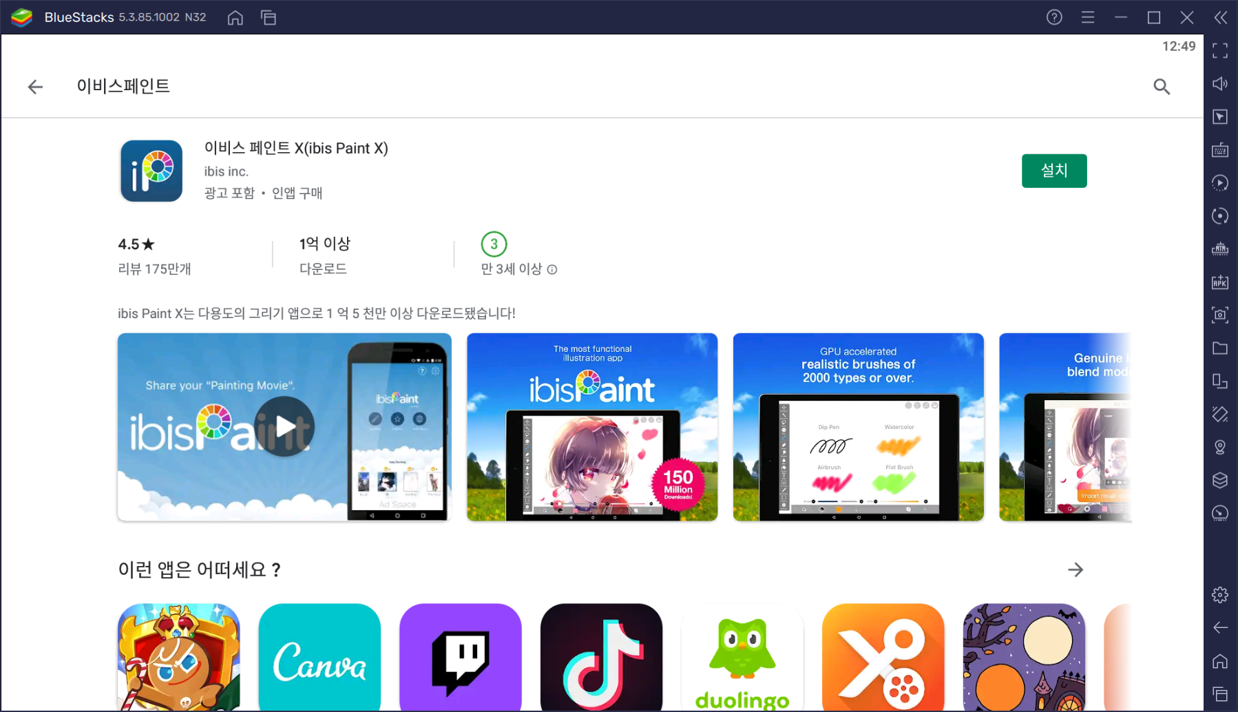 5. 스마트폰에서와 마찬가지로 '이비스 페인트 x (ibis Paint X)'를 검색해 앱을 설치합니다.