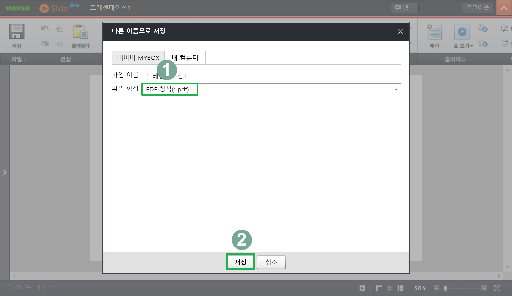 마지막으로 파일 형식을 PDF로 지정한 뒤